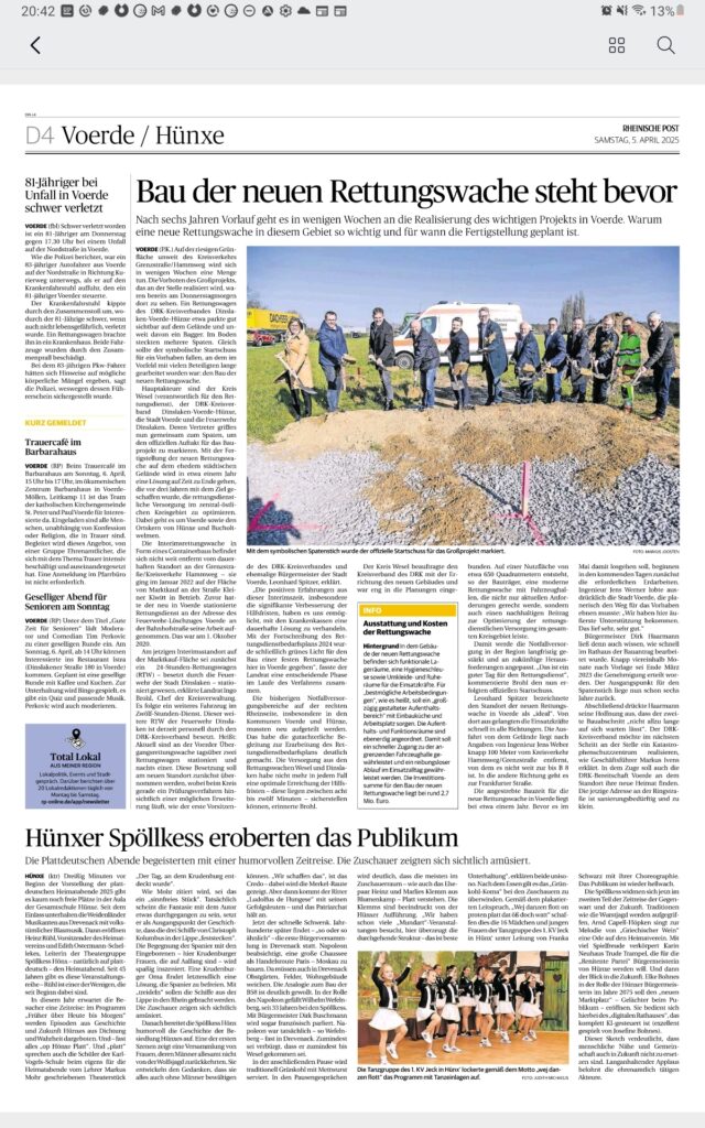Nach langem Warten ist es endlich soweit: In Voerde beginnt in Kürze der Bau einer neuen Rettungswache. Mit dem symbolischen Spatenstich wurde nun der offizielle Start für dieses wichtige Projekt gesetzt.